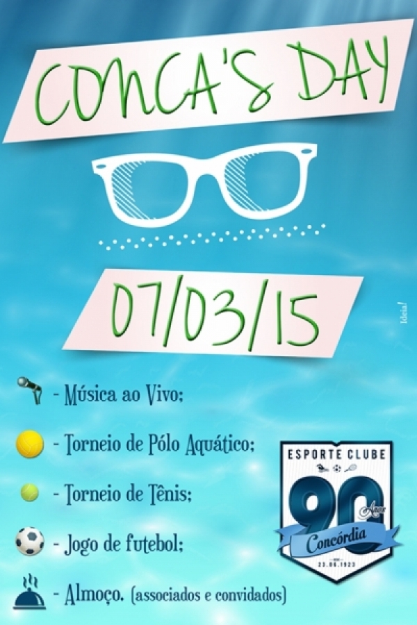 (07/03/2015) - Vem aí o 1º Conca's Day do ano, aqui no Esporte Clube Concórdia e você está mais do que convidado a prestigiar este evento. Traga os amigos, a família, venha se divertir e curtir esse finalzinho de temporada. É nesse sábado, dia 07.03, a partir das 11h da manhã. Aproveite!!